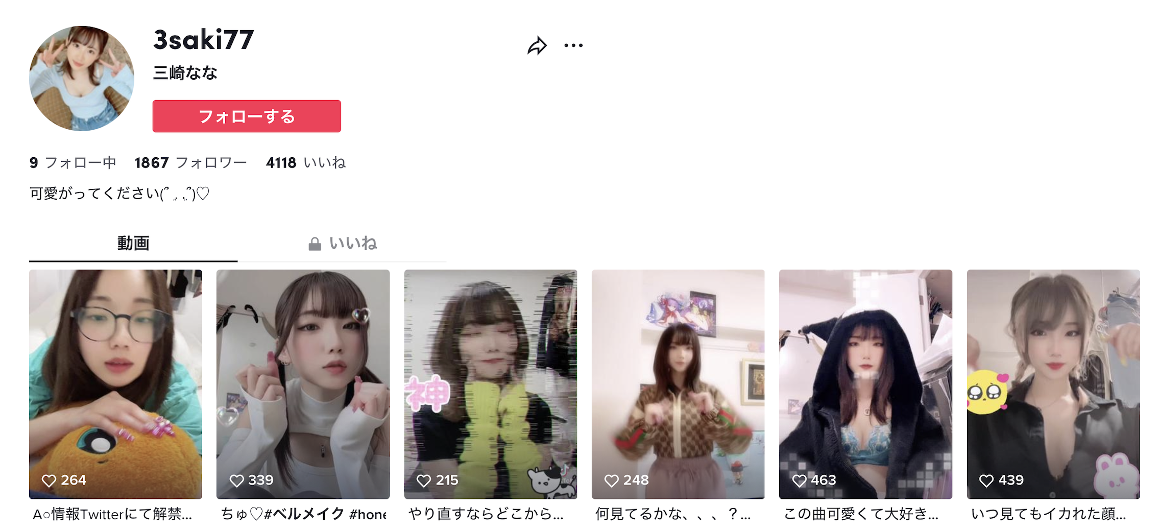 要找到三崎なな(三崎奈奈)的Tiktok( https://www.tiktok.com/@3saki77 )并不难,不过和Moodyz讲的不太一样,这个帐号到目前为止还不到2000人追踪,我是觉得要唬烂不必说她是个2.7万个追踪的小网红,所以三崎なな(三崎奈奈)应该有其他帐号吧⋯
