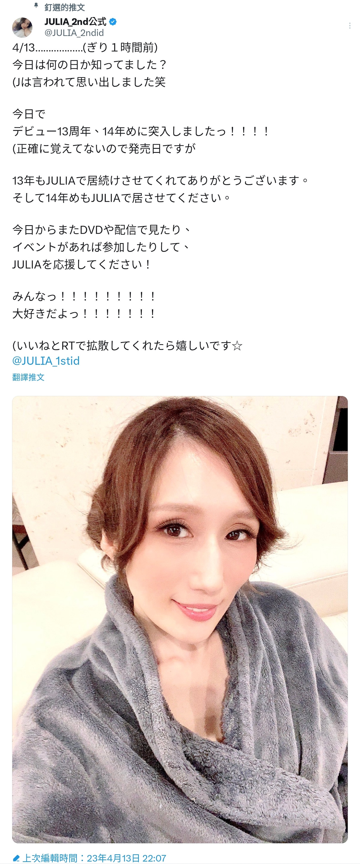 Julia出道13周年!接下来的想法是什么?