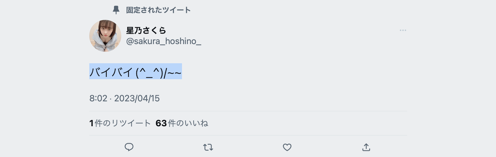 看到了吗?她把追踪退到剩一个、文章删到剩两篇、置顶的文章只写着「バイバイ(^_^)/~~(Bye Bye)」ー