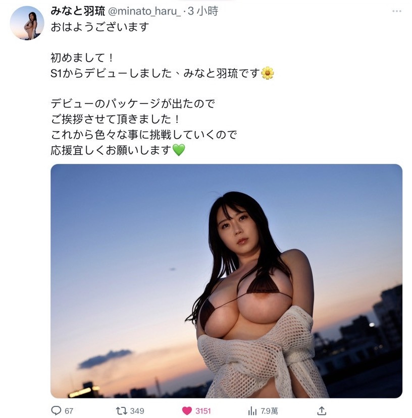 不过诚如业界中人所说,有奶子就不怕没工作,再加上对风俗妹来说没有什么比S1专属女优更好的头衔,所以みなと羽琉(凑羽琉)一定会继续演下去,只是会不会公开露面举办活动、又会不会持续在社群发文目前我没有答案,大家就一起看下去吧~