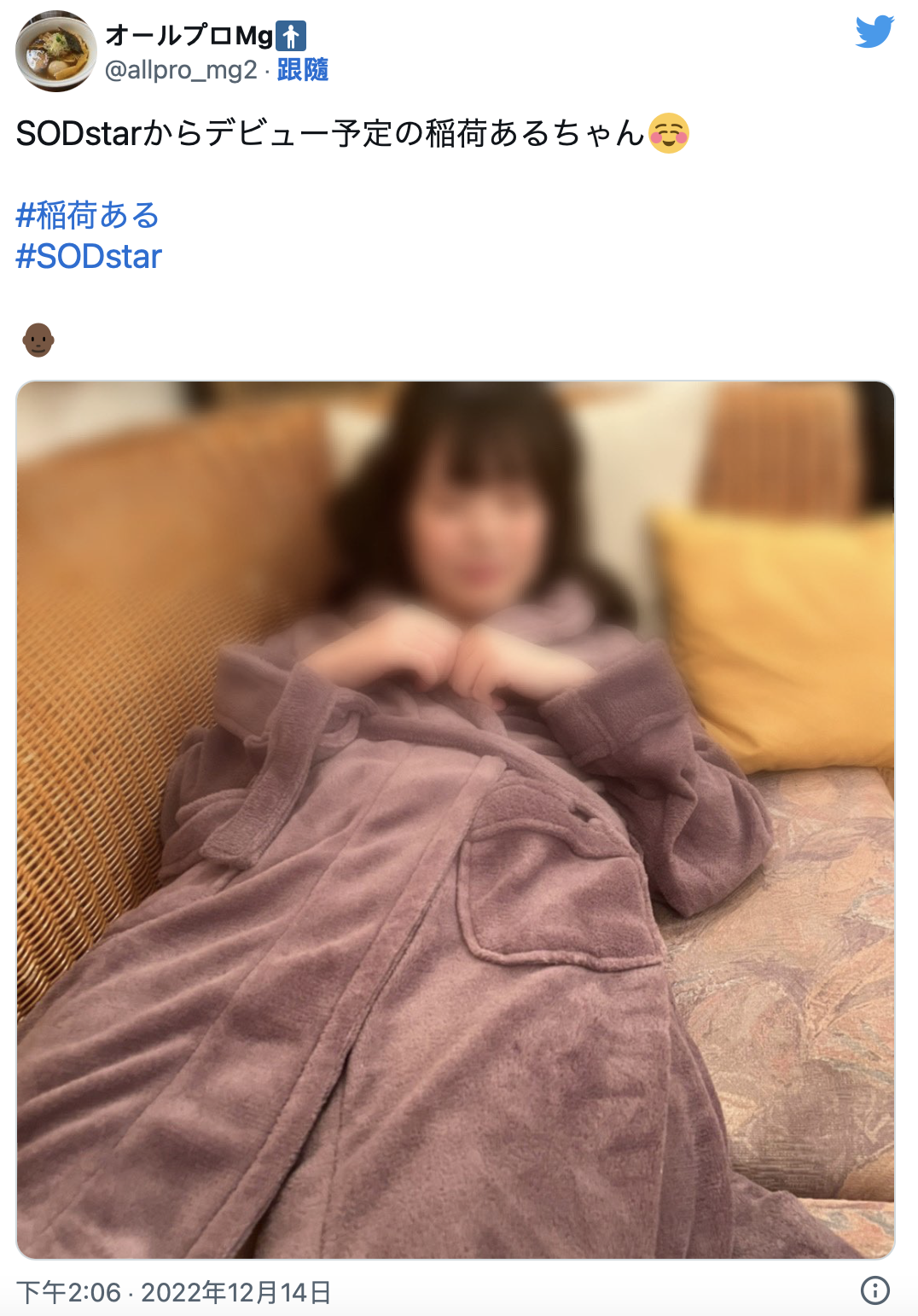 因为SOD STAR现在就没有要你看清楚,简单说就是在吊胃口;不过去查稲荷ある(稻荷步)这名字已经可以发现一些东西了:首先,她之前已经去女子酒场的活动了;再来,对照她当时的打扮,就可以知道她是事务所AllPro的新人女优: