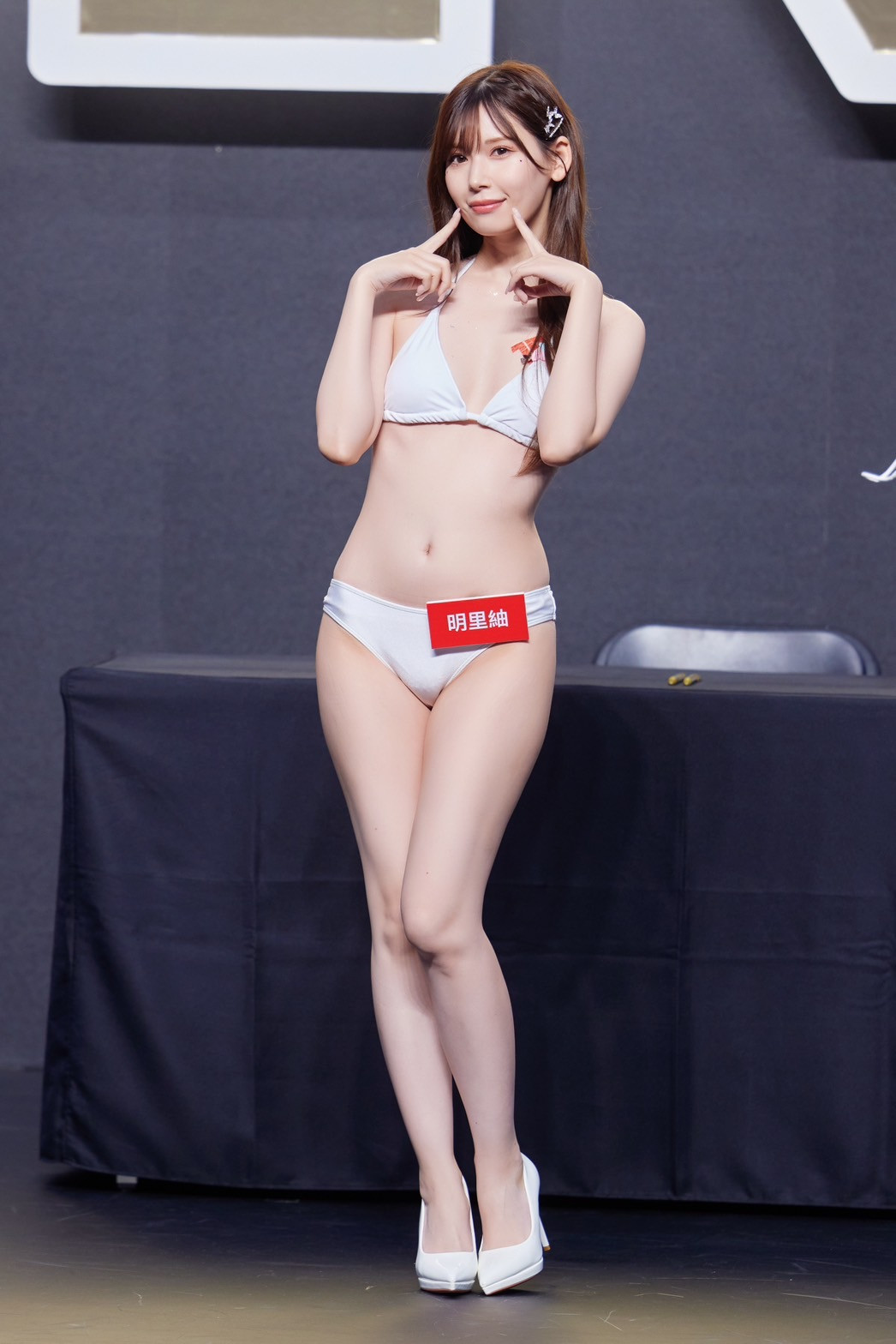 我个人觉得只有一句话,就是「100分」,相信当看完我描述的明里后就知道不打扰也是一种温柔,但在TRE台北国际成人展的大舞台她可没办法做自己不理人,所以她拼了、非常非常拼: