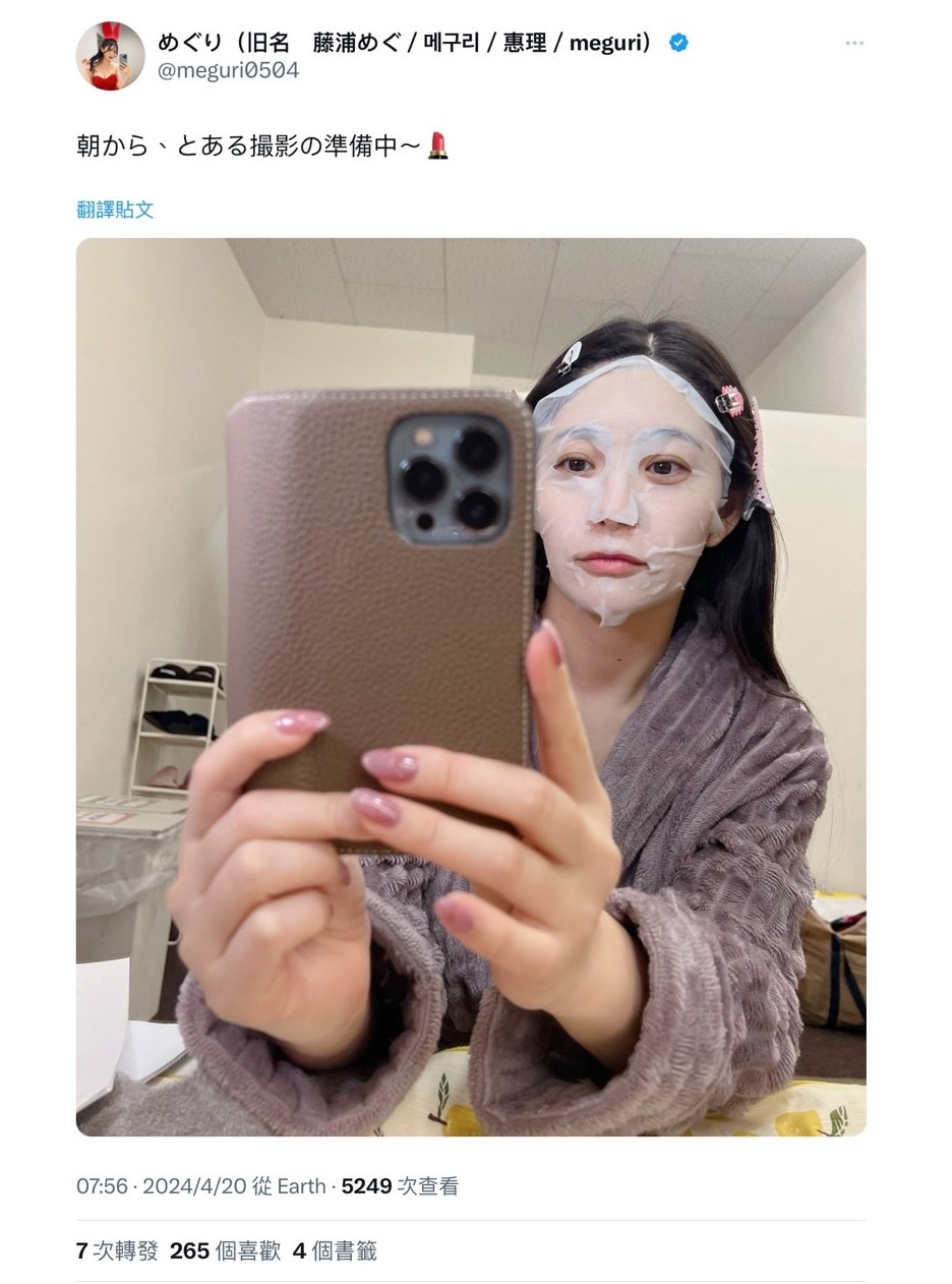 可能有人会以为めぐり(惠理)引退了,这个とある撮影指的未必是拍A片,但你只要到她的X(https://twitter.com/meguri0504)就知道她从来没说自己引退了,在自我介绍她是写说「16年目sexy女优のめぐりです(第16年的AV女优惠理)」,意思就是虽然她很久没拍片了但仍然是「现役」,她不是忘了改,而是从来不认为自己离开惹: