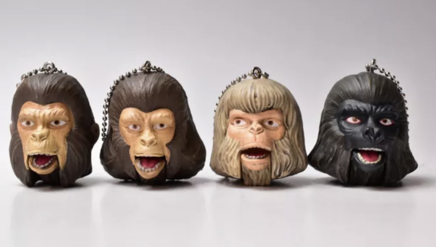1) 庵ひめか(庵姬花)玩的扭蛋是决战猩球的人头钥匙圈。