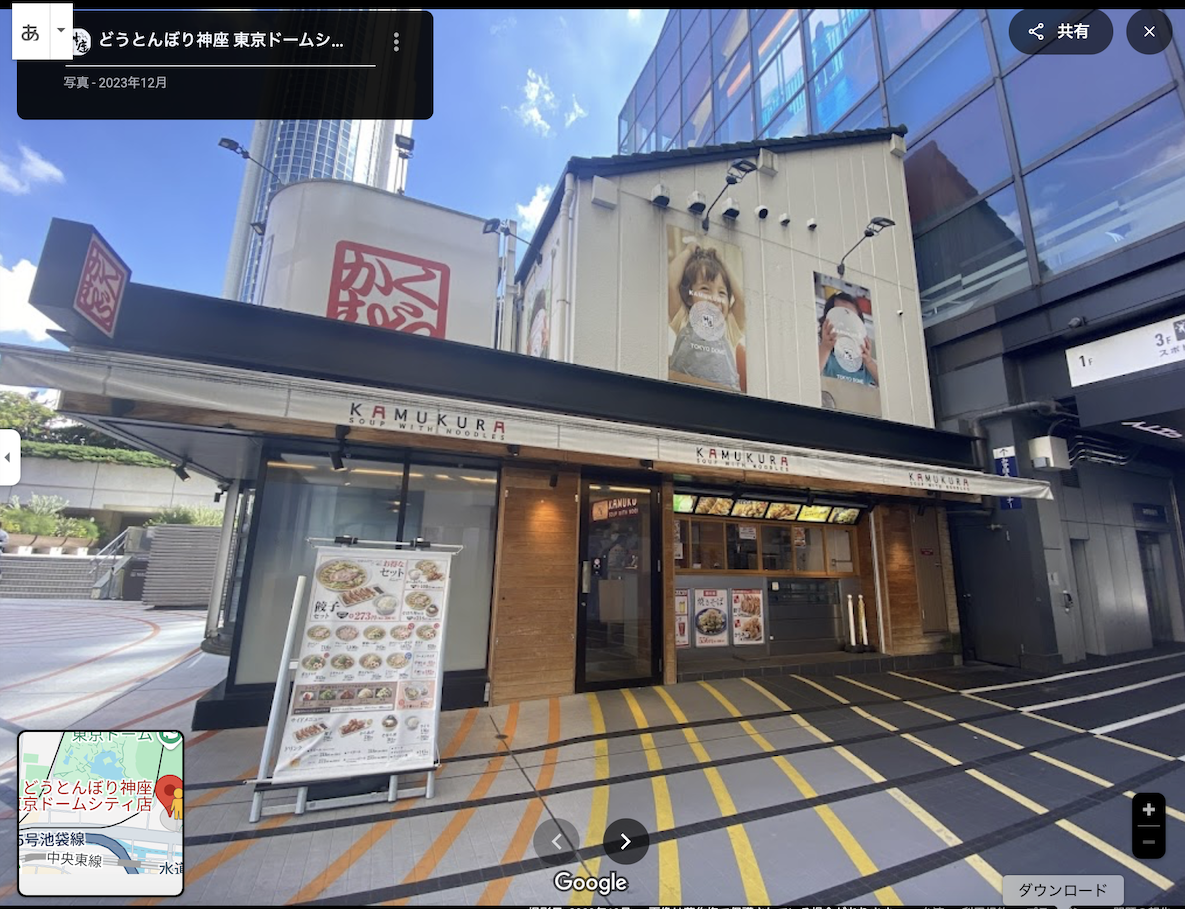 2)拉面店是どうとんぼり神座东京ドームシティ店(道顿掘神座拉面,东京巨蛋City店)。