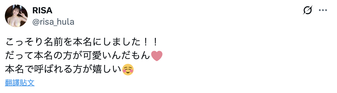 因为她不但把名字改成Risa,自我介绍栏也改成了Hula Dancer(呼啦舞者),然后,之前身为南沢海香的发文通通都被删光了⋯