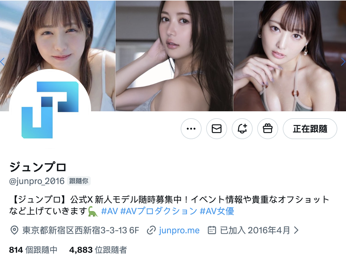 请大家看看,这是ジュンプロ(JunPro)官方X(https://x.com/junpro_2016)的标题图,三位女优分别是矢野爱茉、白峰ミウ(白峰美羽)以及叶月まゆ(叶月真由),结果现在他们已经掉了其中两人—矢野脱离事务所成为自由女优,白峰ミウ(白峰美羽)跳槽换了经纪公司,两位自原先All Group系统带枪投靠高手通通没了,这到底怎么回事?
